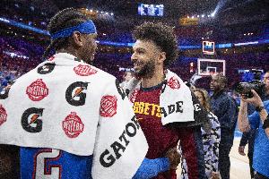 “掘金能否超越雷霆,关键在于贾马尔-穆雷的表现。穆雷在2023年总决赛期间表现出色,场均26分,真实命中率接近60%。然而,在过去两个季后赛中,他的表现起伏不定,场均只有21.2分,真实命中率为51.6%。如果穆雷能够保持2023年的状态,那么掘金有可能缩小与雷霆的差距,甚至超越他们。此外,掘金的新管理层通过一系列引援为球队提供了更多支持,减轻了穆雷的压力。新的替补阵容也为球队带来了更多的深度和选择。因此,穆雷的状态将决定掘金能否在西部脱颖而出。”Amin Elhassan表示。