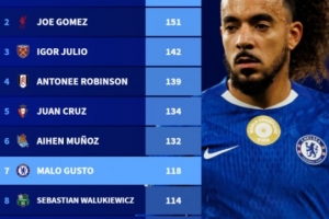 五大联赛无进球出场数排行:乔-戈麦斯151场第2,古斯托118场第7