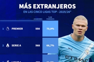 本赛季五大联赛外籍球员占比