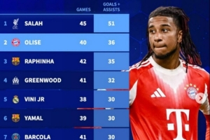 自奥利塞加盟拜仁联赛直接参与36球,边锋位置同期仅次于萨拉赫