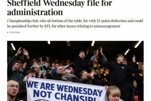 体育资讯10月24日讯 据《泰晤士报》报道,深陷危机的英冠俱乐部谢菲尔德星期三已于周五上午正式向英国税务海关总署提交文件,申请进入管理程序。