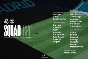 体育资讯10月25日讯 皇马公布国家德比对阵巴萨大名单,姆巴佩、维尼修斯领衔,阿诺德、卡瓦哈尔、赫伊森回归。