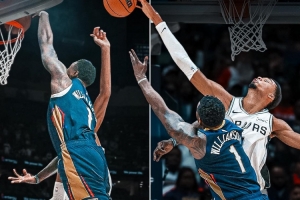 飞虎在天!锡安斜刺杀出残暴单臂补扣 文班来不及起跳又成背景板