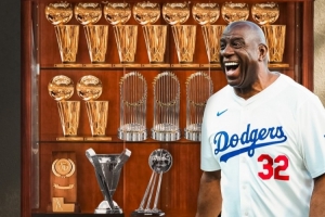 魔术师曾在1979年率队拿下NCAA冠军,他作为NBA球员生涯拿下5冠、作为湖人小老板拿下5冠、作为WNBA球队洛杉矶火花小老板拿下1冠、作为MLS(美国足球大联盟)球队洛杉矶FC小老板拿下1冠、作为道奇老板已经拿下3冠。