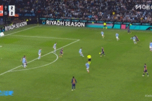 上半场补时阶段,巴萨进攻,拉什福德下底传出倒三角,莫里巴尝试拦截伸脚碰了一下,足球来到后点,亚马尔抓住机会完成破门!